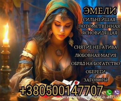 Ясновидящая, экстрасенс и таролог Эмели предлагает свою магическую помощь в самых сложных жизненных ситуациях. С её даром и многолетним опытом вы сможете найти ответы на важные вопросы и изменить свою судьбу к