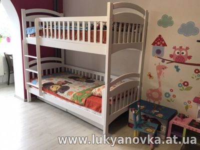 Двоярусне ліжко - трансформер з ортопедичними буковими ламелями, зручними сходами та бортиками для безпечності ваших діток.