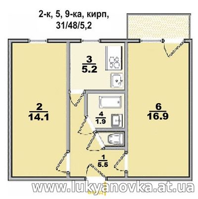 Загальна 36.7М², Житлова 18, Кухня 8.3.